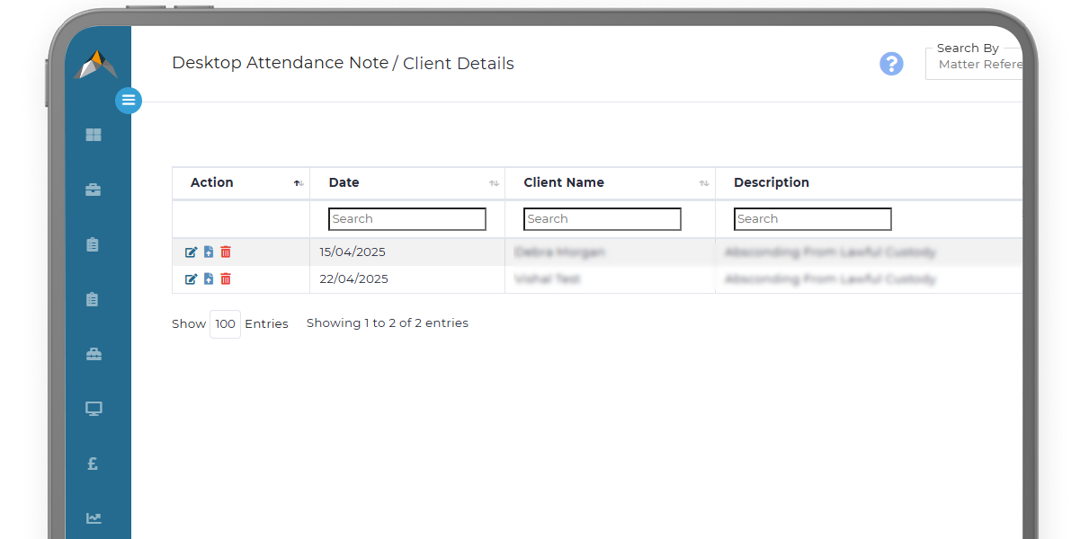 Productivity is maximised as completed attendance notes are uploaded directly to the main online case management system, removing the need for re-keying details of attendances from paper or MS Word attendance notes into the matters on the central database.